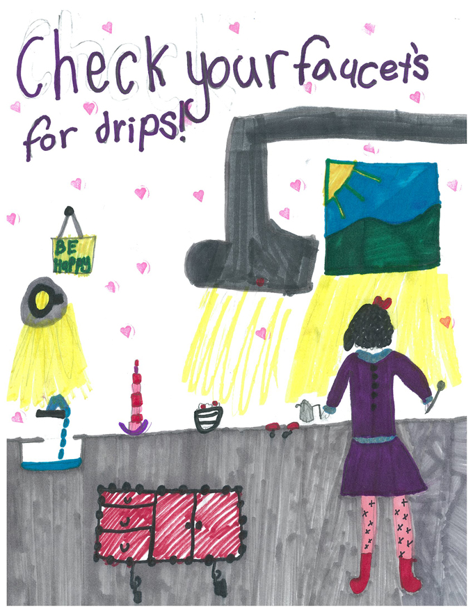 The colorful poster designed by Fiona Hatton was one of 76 total entries in three divisions: grades K-2, grades 3-5 and grades 6-8. The theme was “Every Drop Counts” and posters were to promote water conservation.