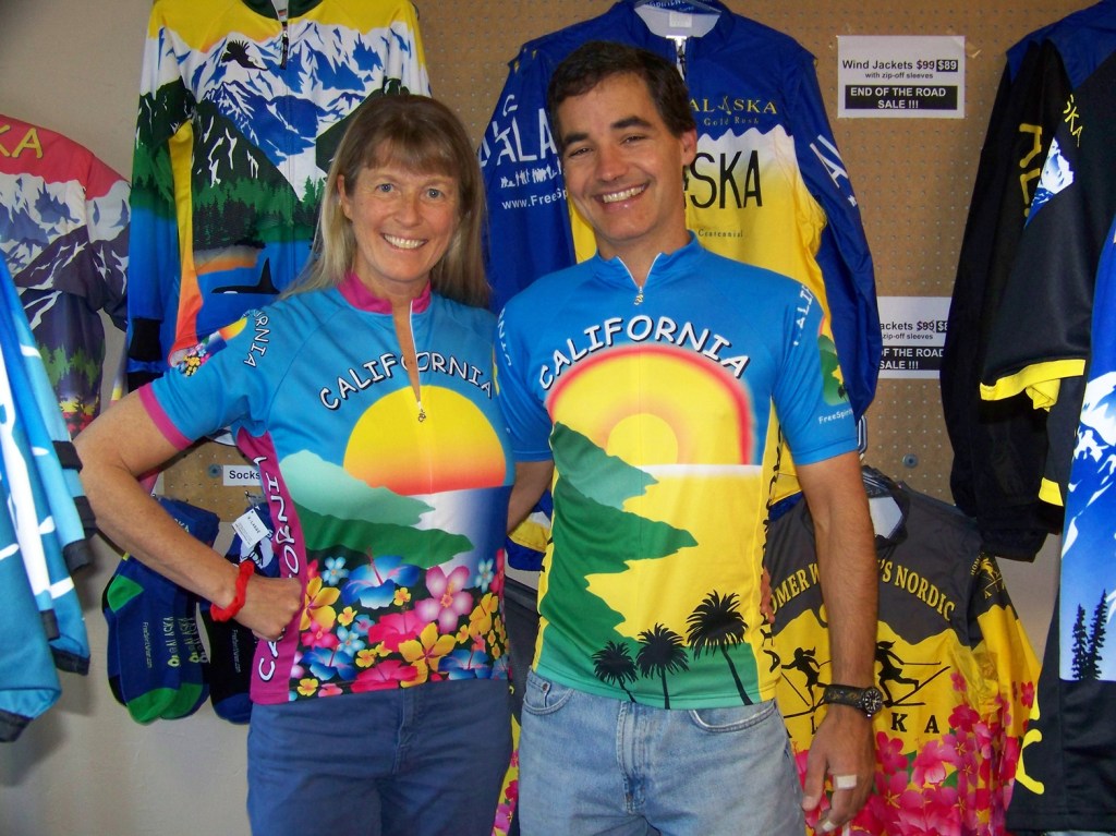 Who knew when Kathy Sarns put her gold rush license plate design on 50 bike jerseys in 2003 to see if they’d sell that her jerseys were destined for Hollywood?