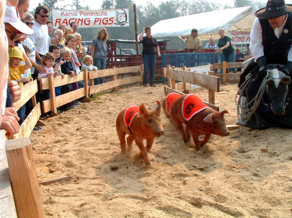 After a year hiatus, the popular Kenai Peninsula Racing Pigs are making a comeback. The six little porkers will perform throughout the weekend.
