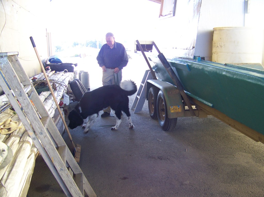 On Sunday, dogs and their companions from the southern peninsula were “studying” for the upcoming trial. Two small cans containing the scent of sweet birch were placed in settings similar to how they will be tested this weekend. Then, with its companion at the other end of a leash, one dog at a time was given the command to find the scent. In spite of surrounding fishing nets and lines, boats, bags of mesquite-scented chips for barbecuing, vehicle exhaust pipes, tires and frequently traveled outside areas, the dogs repeatedly followed their noses right to the source of the sweet birch scent. Praise and treats were given, and tails wagged.