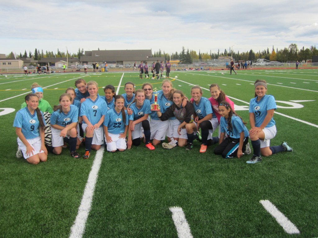The smiling Homer Middle School Huskies’ 20-member girls soccer team has reason to smile. The girls fast footwork earned them the second-place trophy at the middle school Regions Soccer Tournament played in Kenai Sept. 28.