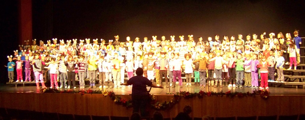 The entire Paul Banks Elementary School student body — all 190 pre-kindergarten through second-grade students — filled the Mariner Theatre stage Monday morning to put the finishing touches on “A Bear-y Merry Holiday.” With props for the upcoming production of the Nutcracker pushed to the side, the youngsters received last-minute direction from Tina Moore, the school’s music teacher. The following day the youngsters were back on stage to give the full musical performance for family, friends and fans.