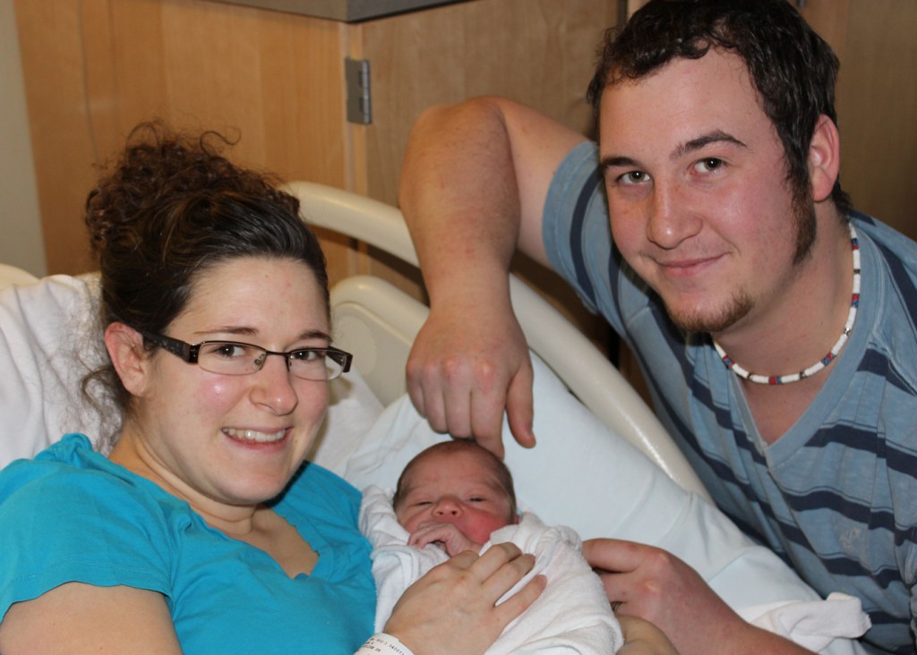 Parents Diana and Brandon Moyer with their new son, Trenton Diesel Moyer, born at 12:44 p.m. Jan. 2.-Photo by McKibben Jackinsky, Homer News