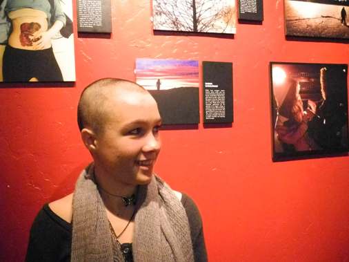 Molly Mitchell stands next to her photograph, “Gratitude" at the First Friday opening of the PhotoVoice exhibit at K-Bay Caffe.                          -Photo by Michael Armstrong, Homer News