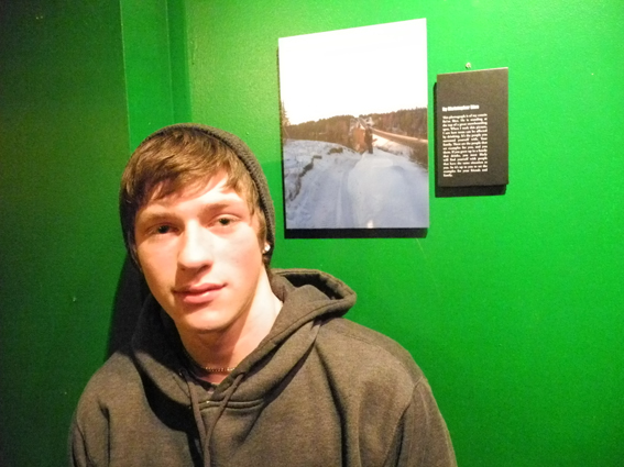 Christopher Bice stands next to his untitled photograph at the First Friday opening of the PhotoVoice exhibit at K-Bay Caffe.  -Photo by Michael Armstrong, Homer News