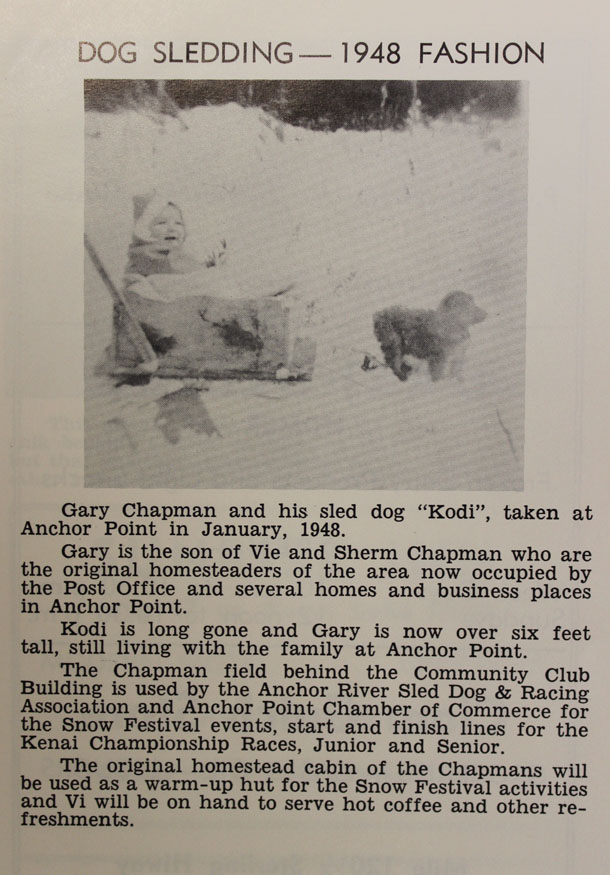 “There were a lot of people who just used their dogs for transportation,” said long-time Anchor Point resident Mary Perry, whose family had sled dogs, but didn’t participate in the races.