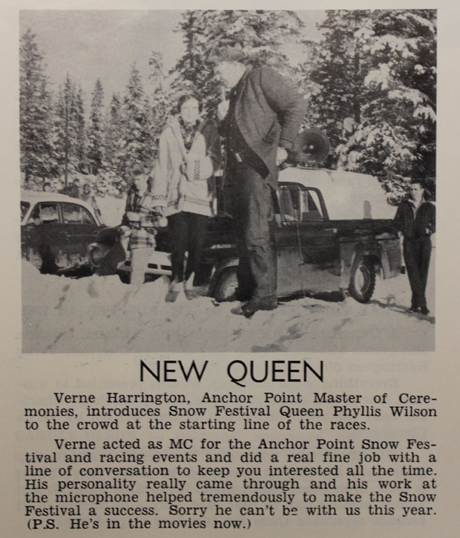 Like the Homer Winter Carnival of days gone by, Anchor Point’s celebration also included a queen pageant. Clutts’s wife, Jennifer, reigned as queen in the early 1990s when she was a high school senior.