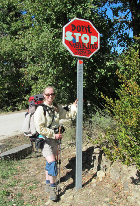 Days on the Camino went something like this: 7 a.m. Wake up. On the trail by 8 a.m. Walk for two-and-a-half hours, take off shoes, change socks and rest feet. Eat a snack. Walk a couple more hours. Stop for lunch. Take off shoes, change socks and rest again. Walk another two-and-a-half to four hours. Stop, find accommodations, shower, change clothes, attend to her nagging blister, wash dirty clothes and hang to dry. Make dinner or go out to dinner, and spend time talking to other pilgrims. If she had any energy left, she would explore the village, town or city she was in, visit a church to attend a pilgrim’s blessing service and read her guidebook for the next morning’s walk.