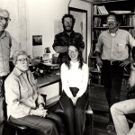 Part of the Homer News crew in the mid-1980s takes a break and poses for this photo. From left are Publishers Howard and Tod Simons, Managing Editor Joel Gay, Business Manager Jill Morse, Editor Tom Gibboney and Reporter Hal Spence. The Homer News was located on Pioneer Avenue in those days, in the building now occupied by Cafe Cups.