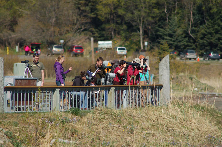 Birders watch shorebirds at Mud Bay on the Homer Spit on Saturday during the 22nd annual Kachemak Bay Shorebird Festival. The migration peaked just as the festival started May 8, with 3,600 sandpipers seen on the Spit May 7 and 8,000 the following day. Birders also reported thousands of surfbirds and red-necked phalaropes on the bay. About 900 people registered for the festival.