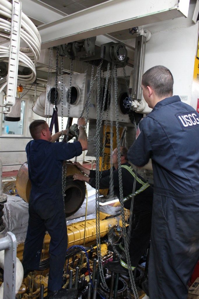 As part of an in-port maintenance period this week, the Homer-based Coast Guard Cutter Hickory conducted a top-end overhaul of the port-side main propulsion engine for the first time since the cutter was commissioned in 2003.