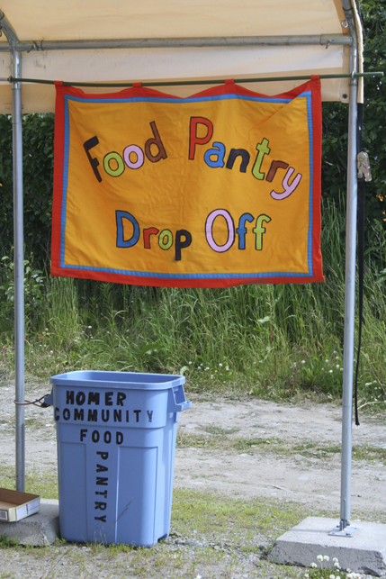 Diana Jeska, director of the food pantry, said they serve between 65-130 families every week, and that having fresh vegetables to put in food boxes for those families is “just awesome.” In addition to the larger garden donations there are individuals who bring in random cucumbers, tomatoes and squash. Vendors and visitors at the Homer Farmers Market also donate to the food pantry by filling a tub set by the stage on Saturdays.