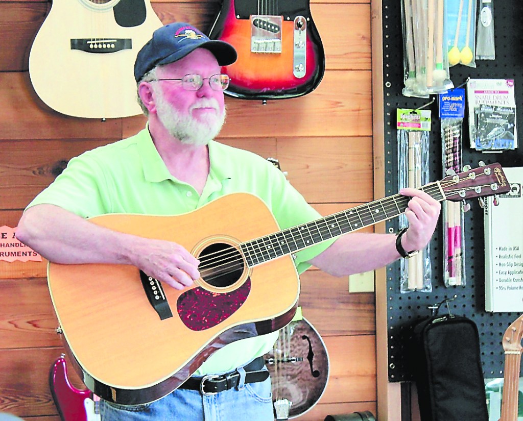 Steve Cornish plays music in his new shop, in the same building as the Art Shop Gallery.