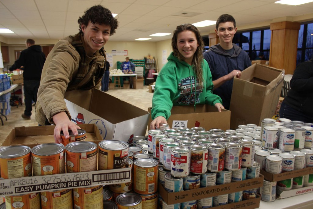 Then came the three-person team of Sarah Wolf and brothers Evan and Zane Boyer, students of Homer High School, each carrying a box they were filling with food as directed.