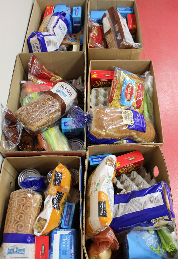 Lions Club members had arrived even earlier, stacking up empty boxes, each one bearing a note indicating the size of a specific family for which the box, once filled with food, was destined. They had sorted food on tables lining the room. Above each table, directions had been posted indicating how much of this and how much of that should go in each box.