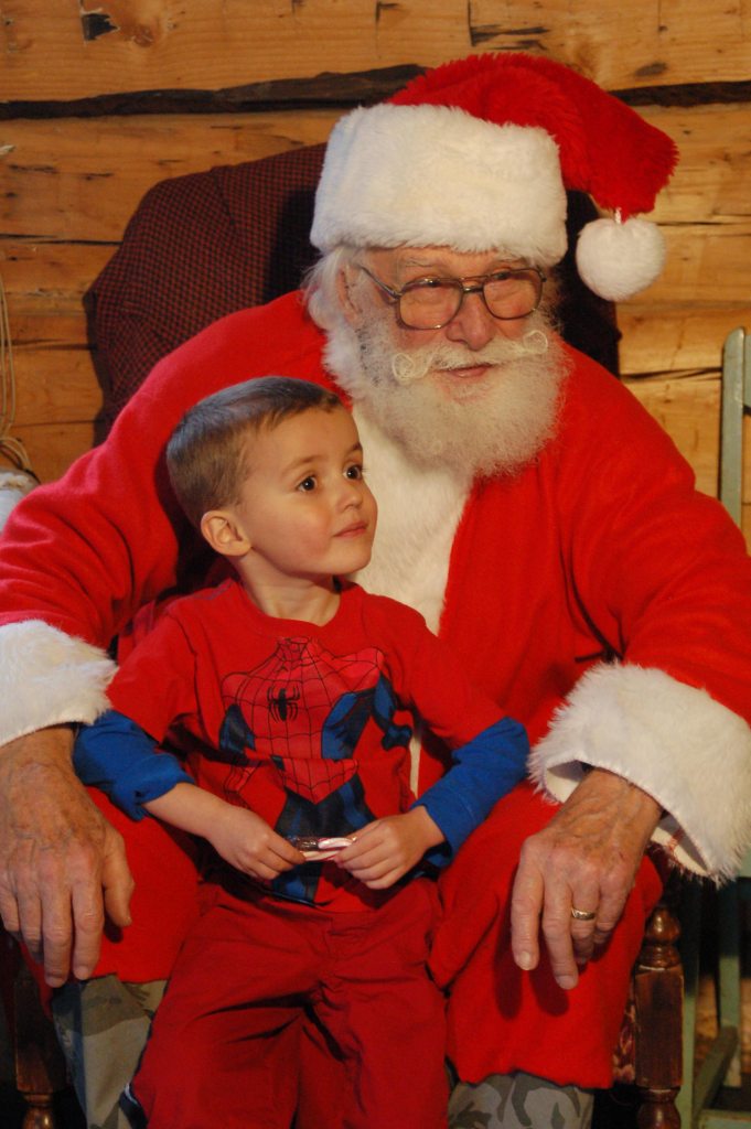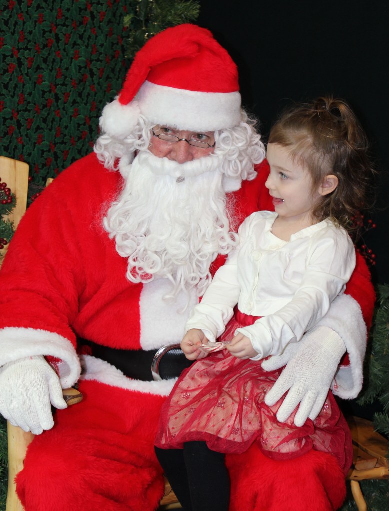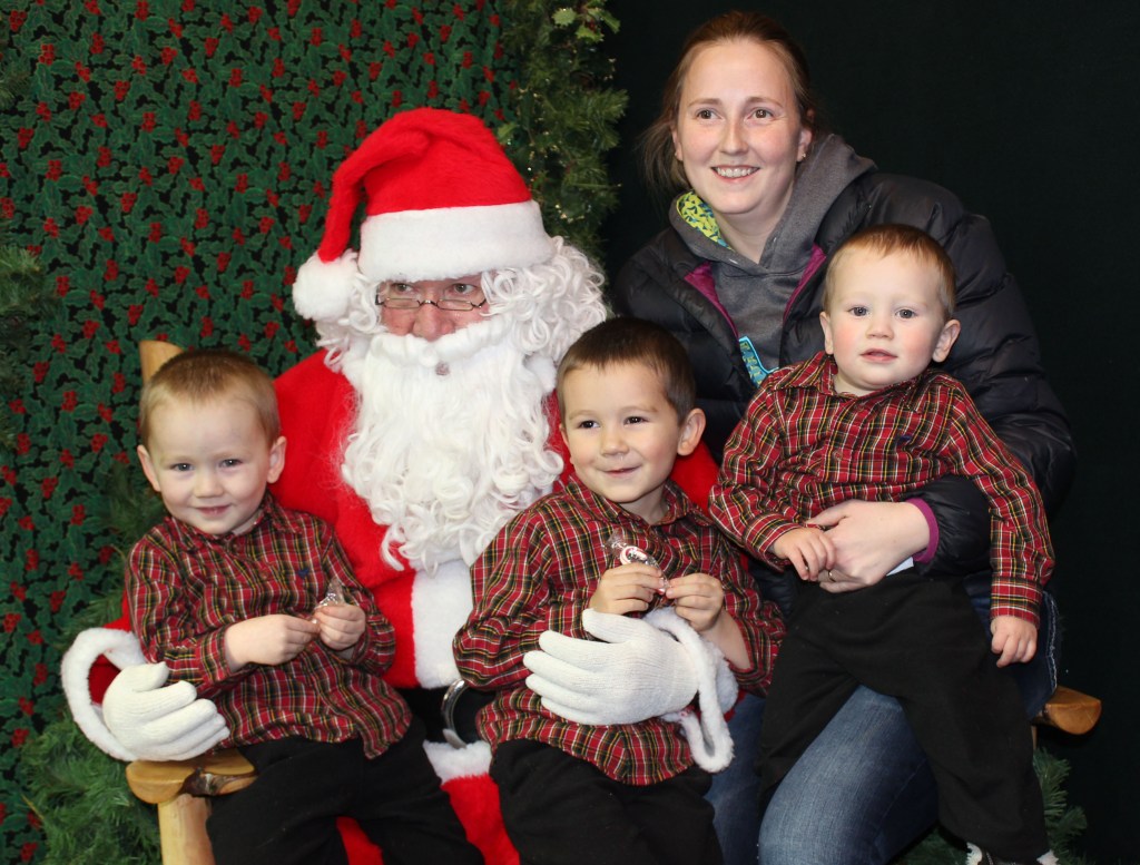 Youngsters start the holiday season with visits to Santa at the Pratt Museum on Saturday and NOMAR on Sunday. Clockwise, from top left, John “J.J.” Chapple V visits with Santa Claus at the Pratt Museum’s Harrington Cabin; Lucca Sanders stops by NOMAR to make sure Santa knows she wants roller skates for Christmas; Hunter Perham shows Santa the graham cracker house he made at the Pratt Museum’s Stocking Stuffer Party; with the help of mom Amy Andree, Santa poses for a quick photo with brothers Wyatt, 2, Ryan, 4, and Skyler, 1.