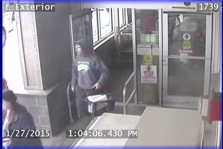 Homer Police have asked the public’s help in identifying the suspect in a theft about 1:05 p.m. Jan. 27 from the Homer Safeway grocery store. Police said that on Tuesday a man left the store with a basket full of items. In a video camera image of the man, he wears a dark hoody sweatshirt with a logo and the hood pulled over his head.