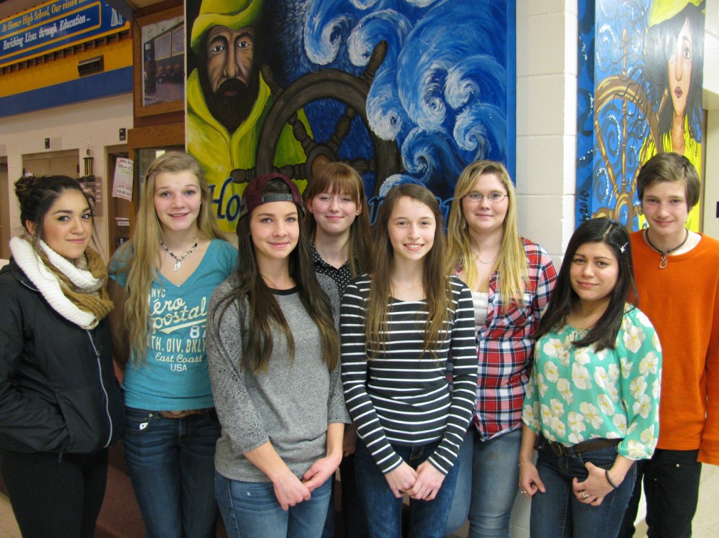 Each Homer High faculty member nominates one outstanding student per year based on scholarship and citizenship. Nominees and their families were invited to a Feb. 27 celebration catered by the HHS Culinary Arts class. Third-quarter winners are, from left, Valerie Rios nominated by Mr. Stineff; Lauren Jones nominated by Mr. Schneider; Nonah Baltzer nominated by Ms. Mall; Karina Roach nominated by Ms. Remsen; Alex Moseley nominated by Ms. Reichenberg; Victoria Chase nominated by Ms. Bedingfield; Yesenia Garcia-Rivera nominated by Ms. Rugloski; and Nick Gilliam nominated by Mrs. Johnson.