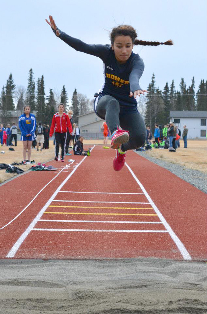 Also among boys, Kenai sophomore Josh Jackman swept the hurdling events, taking the 110-meter race by a whopping 1.76 seconds with a time of 16.26, which pushed him up to sixth among high school boys in the state. Jackman also won the long jump with a leap of 20 feet, 3 inches, and was a part of the winning 1,600-meter relay team.