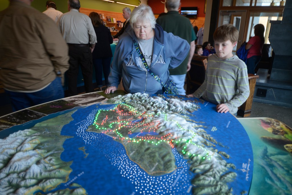 The new visitor center contains a walk-through exhibit called “From Icefields to Oceans,” which depicts the variety of habitats found on the Kenai Peninsula, including wetlands, tundra and streams. Refuge staff co-designed the exhibit with contracted artists from Split Rock Studios, based in Minnesota. Connor said that interactivity was a goal of the new design.
