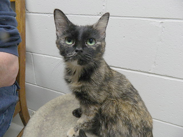 Dolores is a spritely, 6-month-old dark tortiseshell cat. Playful and loving, this little girl gets along well with other cats and most dogs, but would do better in a home without small children.