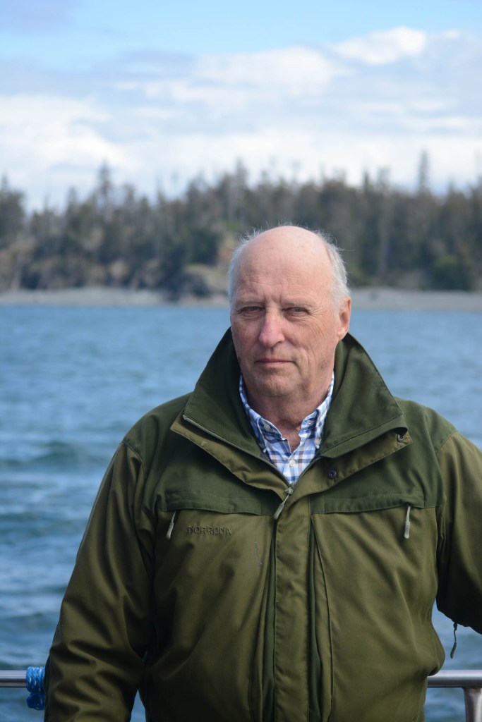 His Majesty King Harald V of Norway visited Homer and Kachemak Bay on Tuesday as part of his visit to Alaska. An enthusiastic crowd of about 100 greeted him at the Homer Harbor load-launch ramp, many waving Norwegian flags and wearing Norwegian sweaters. Several fishing boats also hung Norwegian flags.