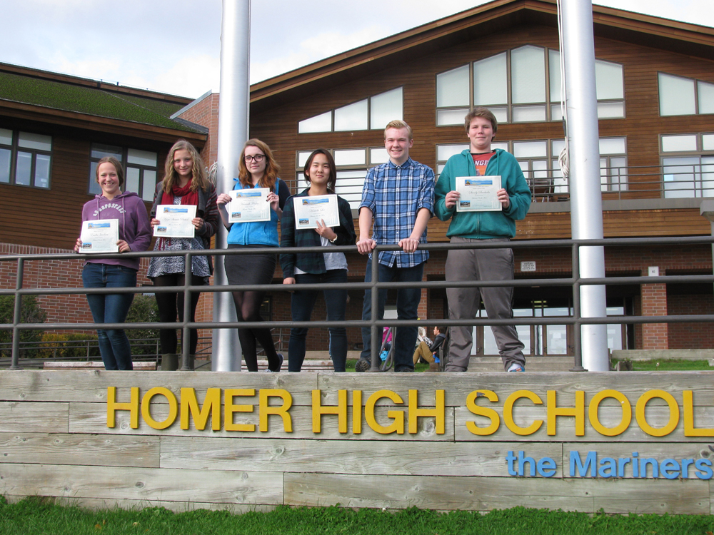 Each Homer High School faculty member nominates one outstanding student per year based on scholarship and citizenship. Nominees and their families attended an Oct. 9 celebration catered by the HHS Culinary Arts class. First quarter winners are, from left, Lia Jacobsen, nominated by Mrs. Hampson; Aziza Shemet Pitcher, nominated by Mr. Rife; Hannah Fraley, nominated by Ms. Bishop; Michelle Lee, nominated by Mr. Akers; Cody Bond, nominated by Mr. Pitzman; and Stanly Swoboda, nominated by Mrs. Reiske. Other nominees who are not pictured are Megan Howe, nominated by Mrs. Borland, and Alexis Herrera, nominated by Ms. Tetor.-Photo provided