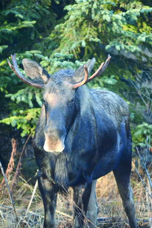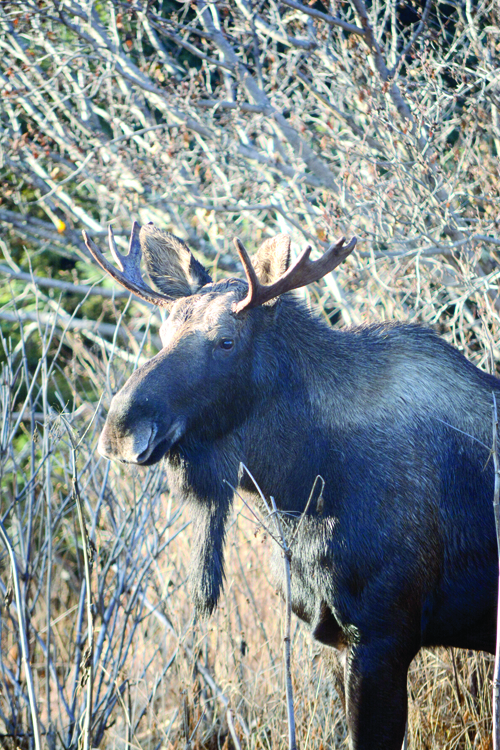 A young bull moose basks in the sunshine last Saturday on Diamond Ridge