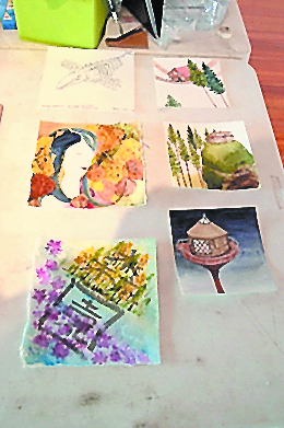 She’s invited anyone in the community to schedule a time to sit down with her at her work space inside Bunnell and tell her about their house. Then she uses the description to make a painting of the house. In return, she asks that the other person make their own piece of art to leave with her. Their work doesn’t have to be impressive; in fact, she says she likes when non-artists sign up because she enjoys seeing what people can do when given the chance to make something.