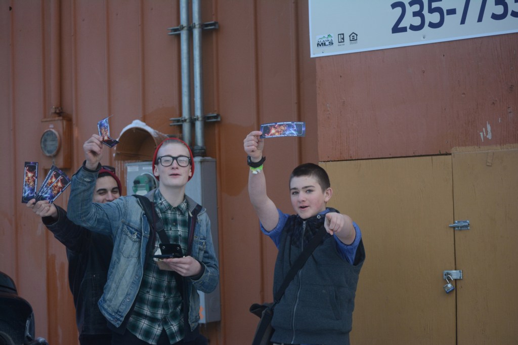 Simon Shelton, Josiah Coe and Angelo Amarello show off their advance tickets to the first weekend showing. The guys had waited in line an hour last Thursday to buy their tickets.