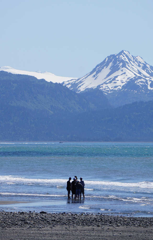 Wading weather Warm temperatures on Tuesday prompted this group of young people to dip their toes in Kachemak Bay to cool off.