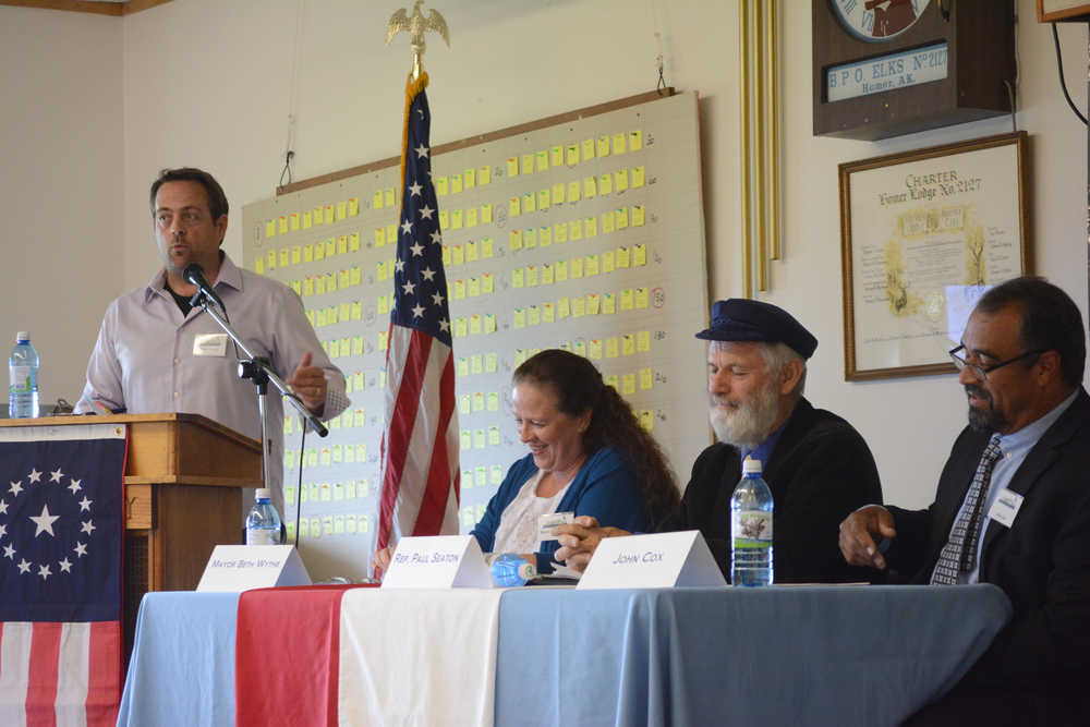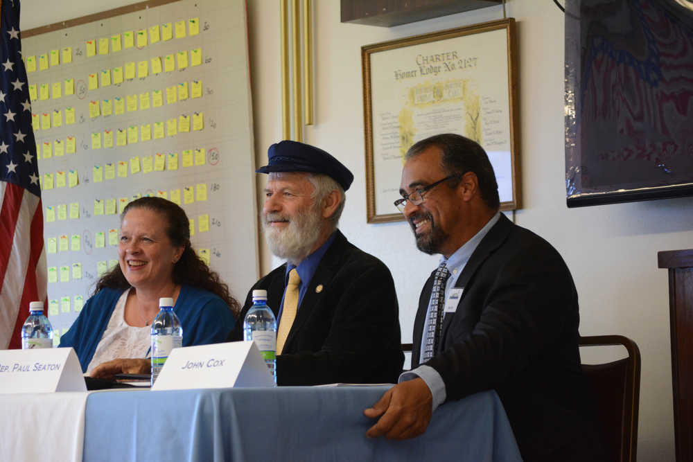 The three faced off in a debate sponsored by the Friends of the Homer Public Library last Friday and in a second debate on Tuesday sponsored by the chamber at the Homer Elks Lodge. About 75 people attended each debate. The formats were similar: give an opening statement, take a battery of questions and make closing remarks.