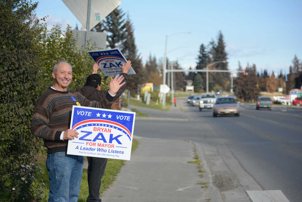 Zak ended a sunny election day waving signs on Pioneer Avenue in front of WKFL Park with supporters.
