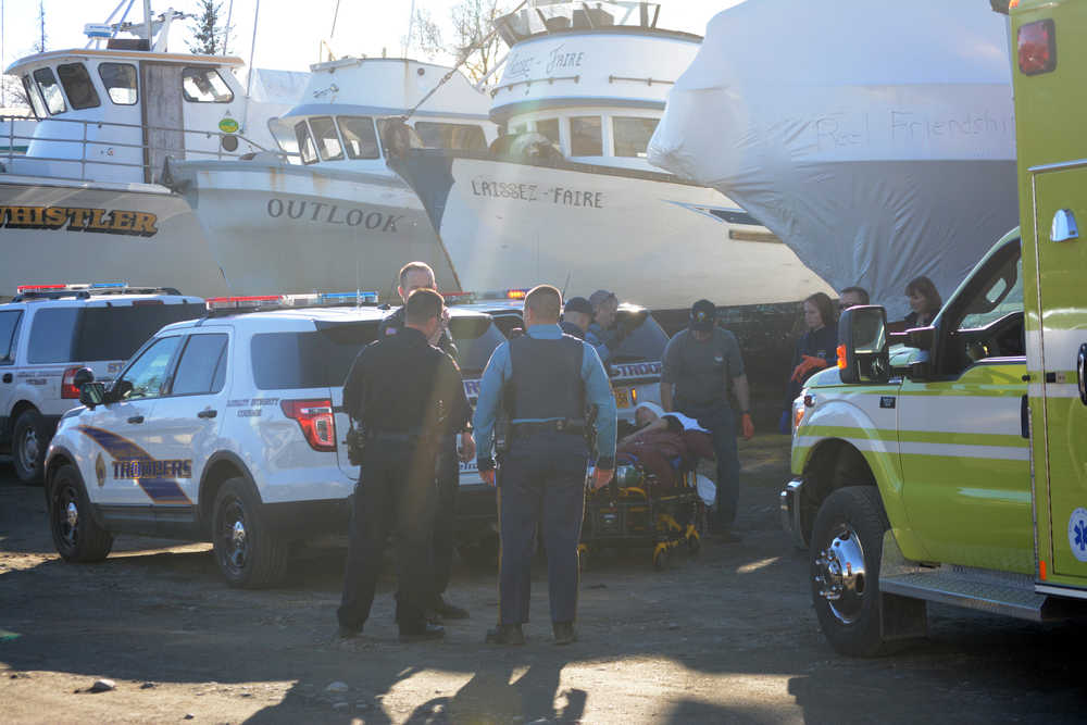 • Browning and McAvoy followed. Suter spun out as he turned onto Kachemak Drive. Suter turned into the Northern Enterprises Boat Yard where he skidded around the gravel lot and commercial fishing boats on cribs. The Dodge crashed into a shipping container and two 55-gallon drums. Firefighters later had to check one burst drum for hazardous material, and put down pads for oily water.
