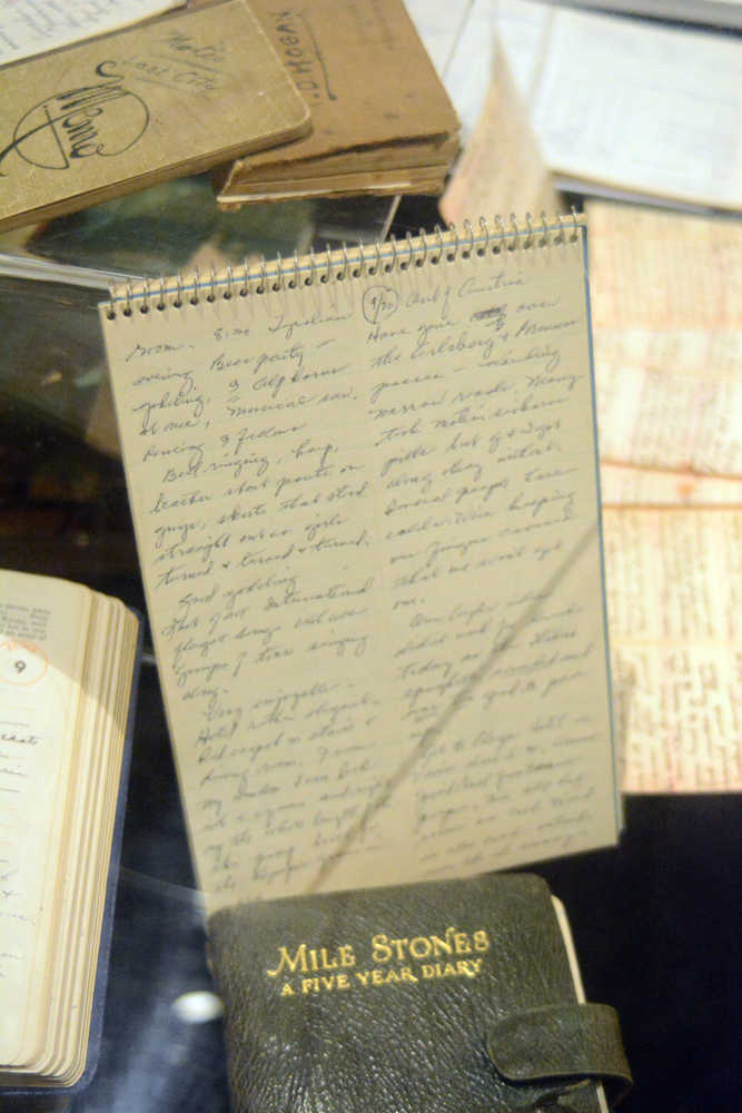 To get artists started, the museum held a workshop in early September where artists could look at the Pratt’s collection of journals and diaries. Its collection includes diaries from several pioneer Kachemak Bay settlers, such as the Elizabeth and Bob Smith family, who lived at Aurora Lagoon in Kachemak Bay. Works cover the era from the early 1930s to the early 1980s, with such treasures as former Homer Mayor Hazel Heath’s European travel journal. Many of the diaries cover practical matters like recordings of weather or animals caught that day.