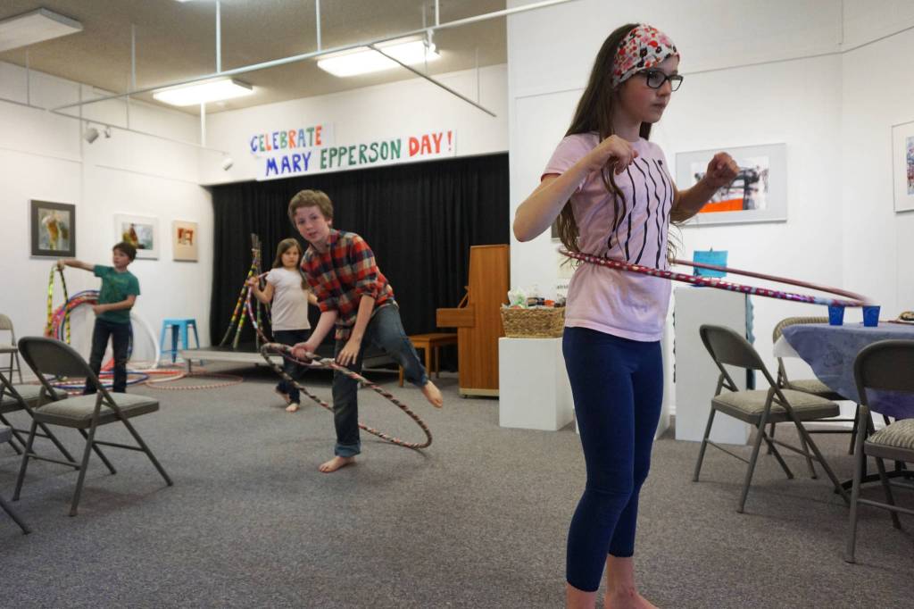 The Homer Council on the Arts on Tuesday, June 6, honored the late Mary Epperson on her birthday with hula hooping, arts creating, music and live Facebook streaming. The event also was a fundraiser to raise the final $50,000 of HCOA’s 50-foot yurt project.