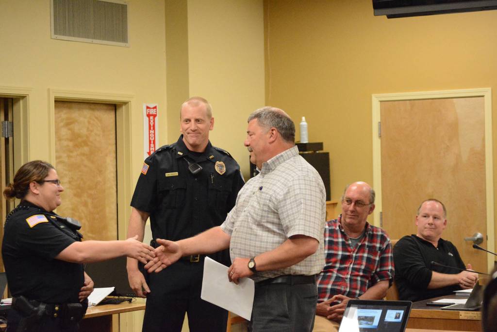 The recent hiring of two new Homer Police Department officers brings the force up to its full component of 12 staff. Homer Mayor Bryan Zak recognized new officers Jessica Poling and Morgan Tracy at Monday’s Homer City Council meeting. The new officers fill positions vacated when former officer Sgt. Larry Baxter was promoted to investigative sergeant after Sgt. Lary Kuhns retired in April and another officer left the department in 2016.