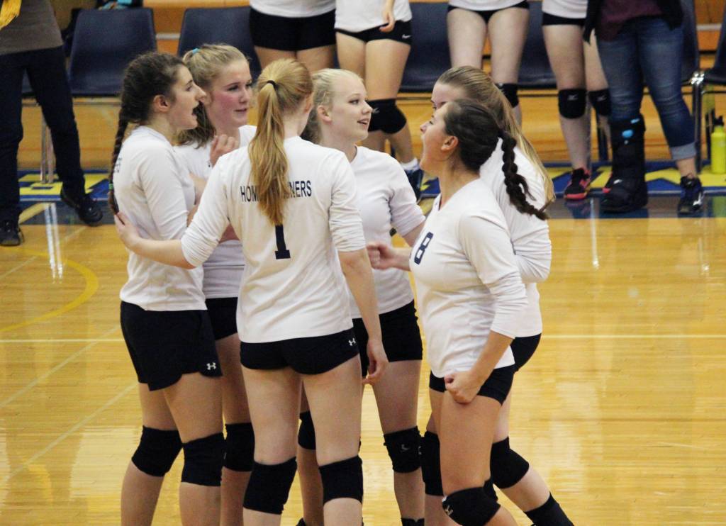 The Homer Mariners varsity volleyball team shut out the competition Tuesday with a win over Kenai Central High School in a non-conference home game, their first of the season.