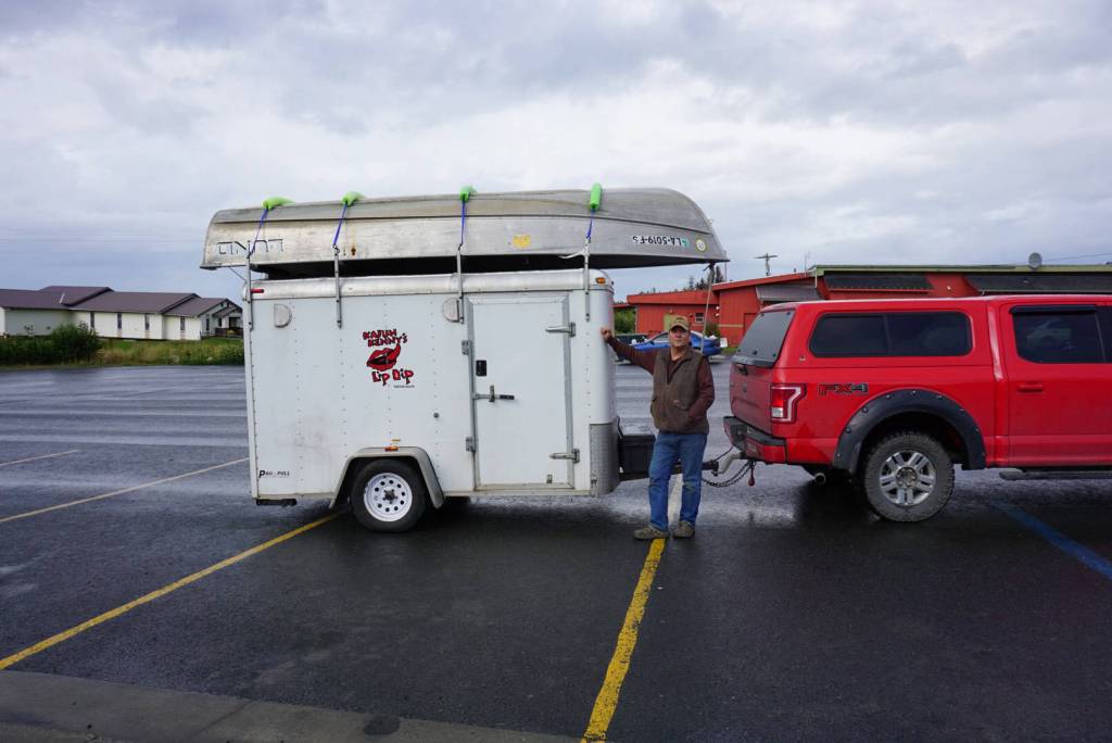 Homer visitor “Kajun” Kenny Joffrion stands by his truck and refrigerated trailer loaded with fish, red beans and rice as he prepared to head south to Houston, Texas. Reached by phone in Montana last week, Joffrion said he planned to arrive in Houston on Monday and start cooking for Hurricane Harvey victims.