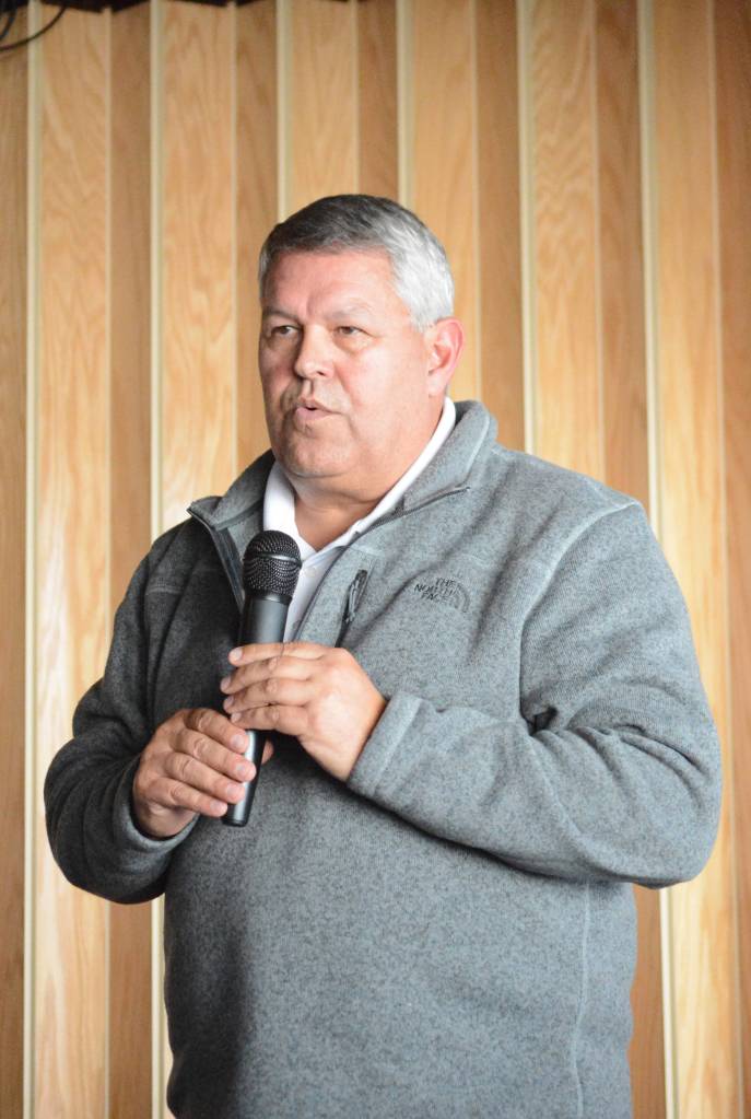 Kenai Peninsula Borough mayoral candidate Charlie Pierce speaks at a debate on Sept. 14 at the Homer Elks Lodge sponsored by the Homer Chamber of Commerce and Visitor Center. (Photo by Michael Armstrong, Homer News)