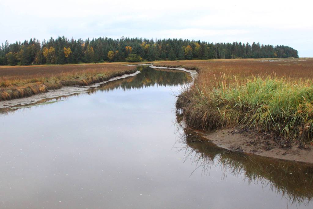 “I learned that the slough has a black mud called … something,” he said of the brackish water.