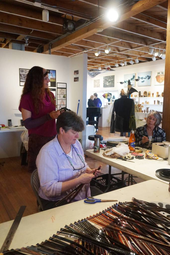 Artist residencies at Bunnell Street Arts Center tend to go in two directions. Sometimes an artist works solo, setting up a studio in a gallery where people can come and watch the artist at work or learn about techniques. Other workshops create collaborations between the artist and the community, making public art that becomes part of an installation.