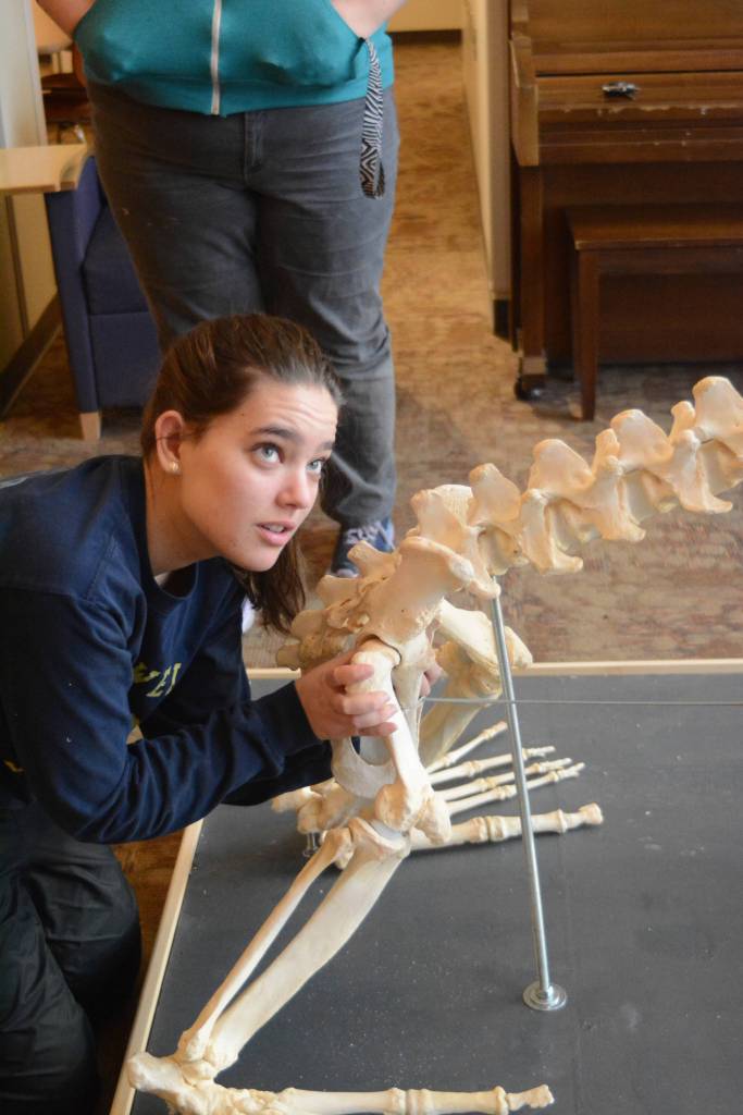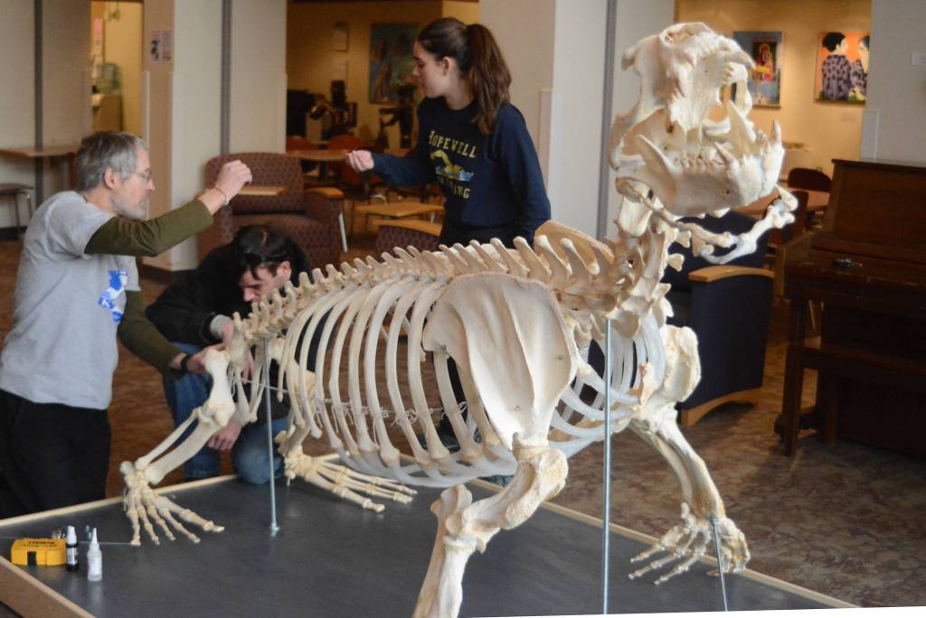 This fall, Woody’s skeletal remains helped students in Lee Post’s Marine Skeleton Articulation class at the Kachemak Bay Campus learn about anatomy and physiology and even art. In conjunction with the college’s Semester By the Bay program, Post has offered marine mammal articulation classes for the past few years. Woody is the fourth skeleton Post and his students have cleaned, repaired and assembled.