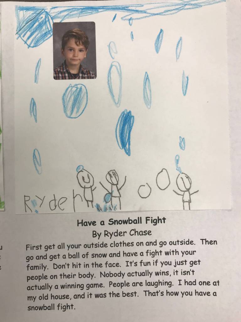 This holiday instruction made by Wyatt Andree is part of an 18-page “How to Get Ready for the Holidays” book created by the students of Jennifer Reinhart’s kindergarten class. (Photo courtesy Jennifer Reinhart)