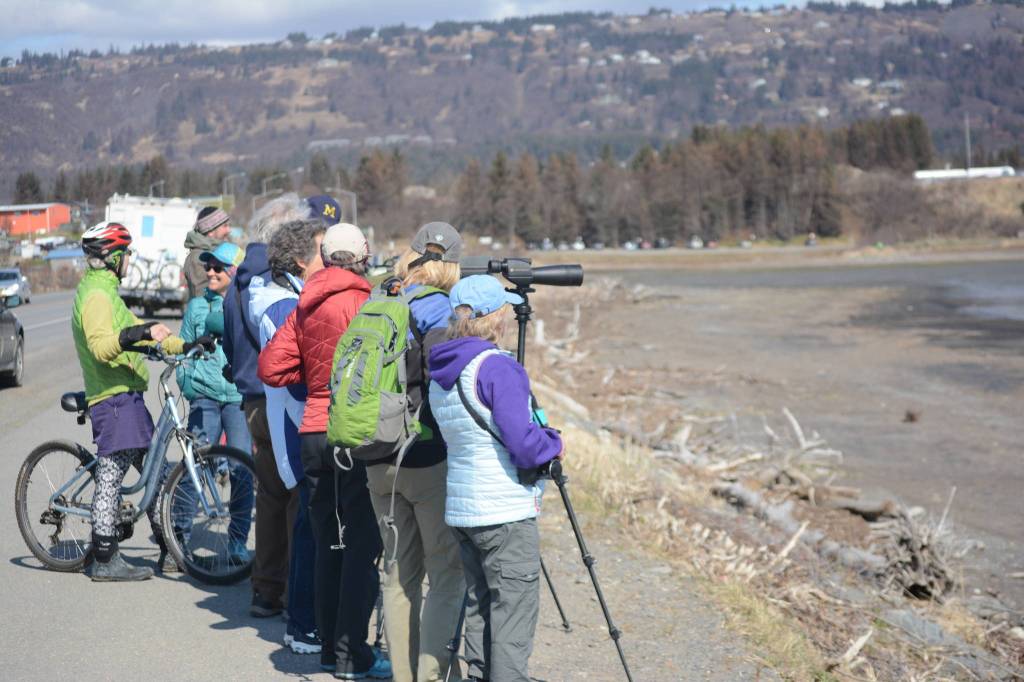 All those birds feeding attracts birders from the Kenai Peninsula, elsewhere in Alaska, from the Lower 48 and overseas. Many birders come to add to their life lists of all the birds they’ve seen. At the peak of the migration and the festival, birders line the Spit trail, spotting scopes aimed at Mud Bay, heads down as they try to pick out a least sandpiper from a Baird’s. As part of the festival, volunteer birders work at viewing stations at Mud Bay and Lighthouse Village, offering tips on identifying birds and zeroing in with scopes.