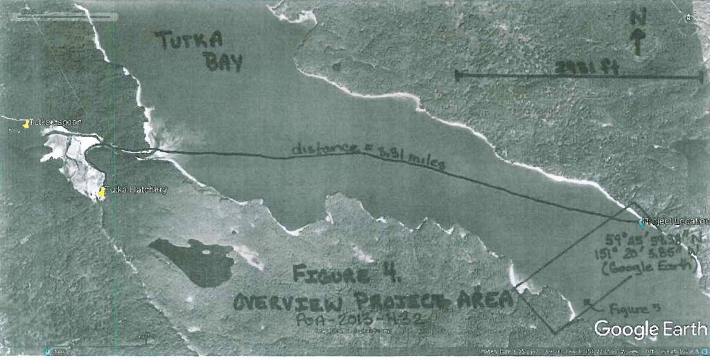 Kachemak Bay Area Ranger Jason Okuly said it appears someone at CIAA dropped a pin on a map using Google Earth — a web based geographic information systems program — to come up with the coordinates. A map with the permit shows a Google Earth image and handwritten coordinates.