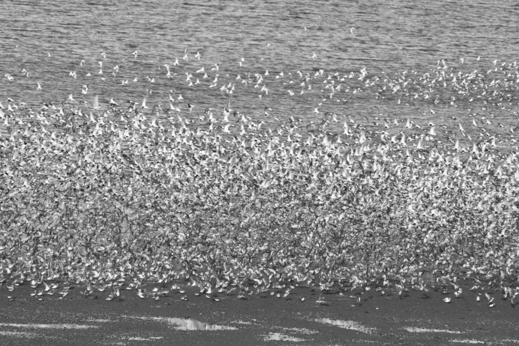 So do the shorebirds care? Well, I think so. For the last 10 years, Kachemak Bay Birders have been conducting a citizen science project to monitor the spring shorebird migration that stops over at Kachemak Bay. Our monitoring data seems to indicate that populations are not continuing to decline, and may even be slightly increasing. This is really good news considering that the 2016 State of North American Birds report found that “Migratory shorebird populations have declined by almost 70 percent since 1973.” However, Kachemak Bay is only a cog in the wheel. Also, if there is recovery, much credit goes to those who made valiant shorebird conservation efforts elsewhere (e.g. international pressure on Panama to prevent destruction of protected mangrove swamps that provide significant winter habitat for shorebirds). But what our efforts do demonstrate is because of our previous efforts to protect habitat, Kachemak Bay is a good place for monitoring changes that are of a larger scale. We know shorebirds are special and will continue working for their recovery, and hope they continue to visit Kachemak Bay.