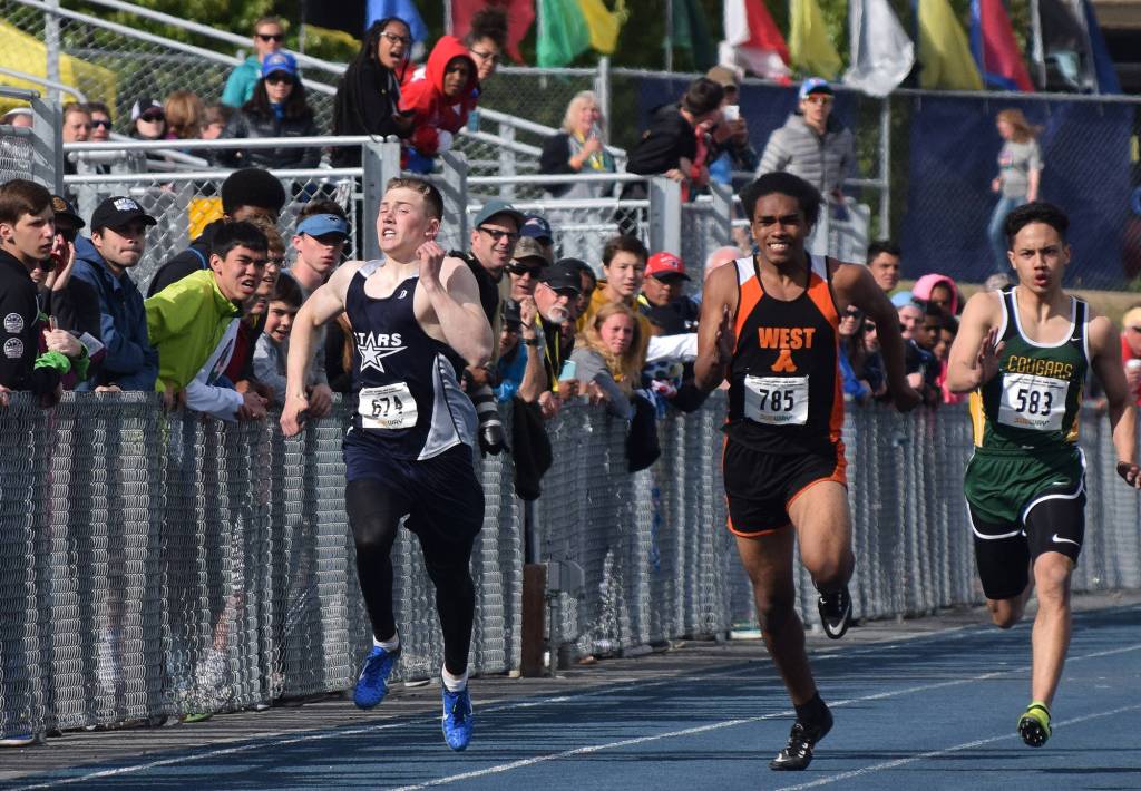 The moment was one of many highlights for peninsula athletes at the season-ending track meet, which went off at a furious pace under warm, sunny skies in the Valley.