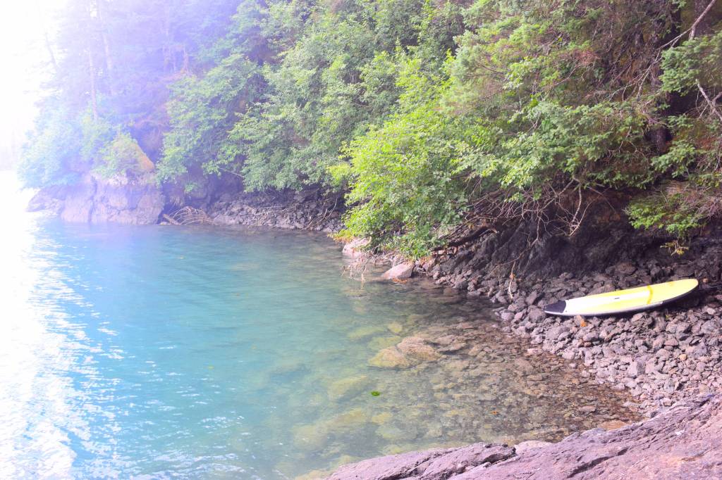 We parked our paddleboards in the rocky cove, and got to work getting a fire going in the yurt. It’s soggy out there. A yurt, the perfect “leave-no-trace” dwelling, can sleep up to six people, and every yurt across the bay comes prepared with a fire stove and Coleman propane grills. Once the wood stove was warm and cackling, we turned to the water thrumming in and out of the yurt’s private little cove.