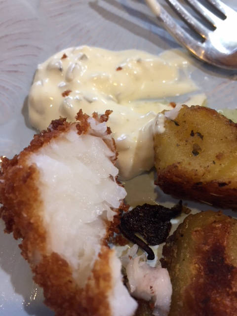 Our first- of- the- season halibut dinner is always deep fried. I cut the halibut into chunks about 1-½ inches and pat dry with paper towel. When I don’t make a tempura batter, we like a panko coating. The halibut gets dredged in seasoned flour, next into a mixture of a beaten egg whisked with a healthy splash of milk, and last, coated with panko. Into the hot oil to fry and when done, served with malt vinegar, fresh lemon wedges and tartar sauce. Usually I make some sort of potato to serve with it.